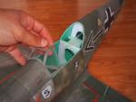 In principiu fac o caseta, de obicei din placaj in care bateria intra fest si pe una din laturi pun putin velcro (Ju87) sau la capat bentita velcro ce agata bateria. La Hellcat bateria este perpendiculara pe axa fuselajului.La Spitfire am velcro pe toata lungimea bateriei si capac de siguranta din placaj.