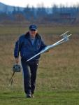 Eu: promenada. In primul rind am avut pofta de zbor. De mult n-am mai zburat 5 acumulatori intr-o zi de cimp, acum mi-a reusit. Am incercat sa ma relaxez desi a fost foarte rece. Cam la jumatatea fiecarui acumulator, am aterizat sa-mi incalzesc degetele. Am avansat marind viteza de rotatie, heli-ul a mers de nota 10.