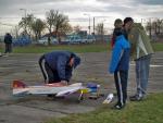 Dan: s-a chinuit singur. Pentru inceput a zburat vre-o 3 acumulatori cu acrobatul (ala bun). I-a mers, pacat ca erau rafale foarte suparatoare pe sus, modelul destul de usor, si concursul destul de departe. Face pasi inainte, se lupta cu curba de invatare, care dupa inceputuri se mai aplatizeaza. Dupa asta, si-a scos cessnica. Mere, zboara, nu-i prea place motorizarea 2S, mie mi se pare ca zboara cam ca 400 brushed direct drive.
