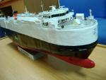 Uite si o poza cu nava vopsita si cu suprastructura pusa (inca nu e terminata si nici lipita suprastructura).