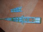 Trebuie sa recunosc ca nu am putut rezista tentatiei de al "cosmetiza" cat mai frumos ceea ce ma va costa f. mult. in acest moment estimez greutatea finala unadeva la 630-650gr...adica exact la limita maxima propusa. Chitul, vopseaua si toate colantele rosii au adaugat cam 90gr....dar asta e...macar de macheta statica si tot il tin.