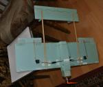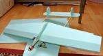 La primul care l-am construit "la ochi",am avut norocul incepatorului :).Aripa zacea pe un dulap si avea capetele distruse,asa ca le-am taiat,deci eleroanele le-am atasat pe ce a ramas din ea.Am mai trintit un motor de care nu mai stiam nimic + o elice 7x4,3 servomecanisme,regulatorul si regulatorul recuperate de pe Easy Glider + un pack 2S 850mAh care astepta de aproape un an sa fie folosit la ceva.Rezultatul...a iesit un fel de strutocamila,dar care a zburat incredibil de bine,chair si atunci cind a sarit toata electronica afara si se balanganea pe sub avion :)