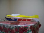 -in stadiul actual vopsit si frezat partial are 37g( mai am de frezat jumatatea superioara a fuselajului,o bucata mica din jumatatea inferioara ,deriva si sfg-urile).. estimez greutatea totala a pieselor din depron frezate la 34,5 -35g ,sa nu uitam ca din astea daca vrem doar depron scadem 2,5g carbonul din aripa si lipiciul aferent,vopseaua am facut ceva teste si a luat 0.2 g pentru aripa deci cam 1g tot modelul.