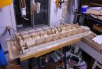 Am avut surpriza ca, in cutia destul de grea, erau multe bucati de polistiren expandat. Dupa ce am migalit sa le culeg, am vazut si continutul. As zice ca este mai mult de cat satisfacator. In plus am si jig-urile pentru aripi. Pe masa de lucru sunt cateva din placile necesare fuselajului.